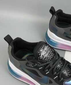 This insane design cue is then followed up by an even more insane tongue that’s been completely studded out from top to bottom, resulting in a mix between punk rock and fairy pop. Down below, the critically acclaimed hybrid midsole makes a return, with React foam at the forefoot and a multicoloured Air bubble at the heel, finalising the design.