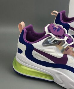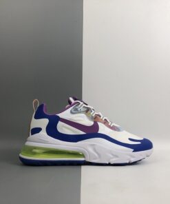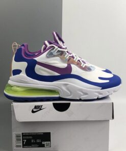 The AM270 React is releasing alongside similar variations of the AM97 and AM90, with all of the silhouettes taking on pale-hued colourways. Using a primarily white upper, they are dressed with hints of blue, purple and laser green for a striking and effective colorway. Nike’s signature Swoosh branding is visible on both the lateral and medial sides, while an Air Max logo is situated on the tongue.