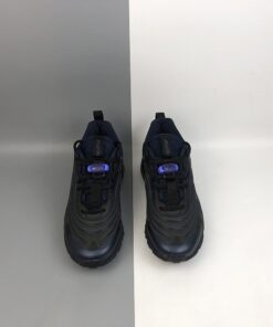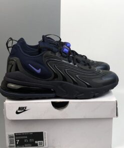 This offering of the shoe sports a full Black-based upper with matching wavy plastic overlays. An Obsidian hue is spotted around the collar, tongues, and midsole highlighted with vibrant Sapphire accents on the Swooshes and lace toggles.