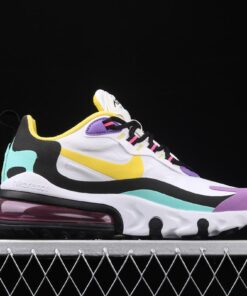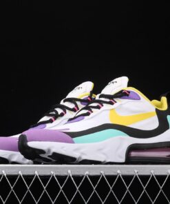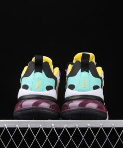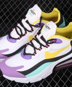 the silhouette is now finding a sort of middle point between both ideals with a scheme of “Geometric Art” influence, coloring up the model in abstract fashion. Despite borrowing both namesakes, the pair is one quite mistakable for much else as it bears only the slightest resemblance: uppers whose look blends many from the famed Air Max line-up takes yellow swooshed, purple cap toes, black and blue mudguards topped on a sole imposing. Cushion, which feature the enlarged form of the 270, are tinted purple, making for a pair that is loud and at the same time subtle.