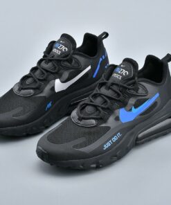 One of those is this upcoming offering that features a Black-based upper constructed in mesh with synthetic and leather overlays. Highlighting the shoe are Blue contrasting accents on the branded sides along with “Just Do It” on the lateral. A Black React cushioned sole completes the design.