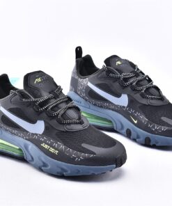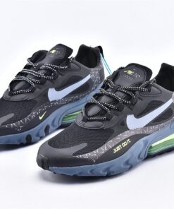 This release features an Anthracite-colored upper with a Light Grey Swoosh logo on the sides along with an all-over Swoosh print on the overlays and heels. Pops of Volt appears on the tongue, mini Swooshes, heel, insole and “Just Do It” text. A React midsole with a vibrant Air Max 270 heel unit and Black outsole plugs completes the design.
