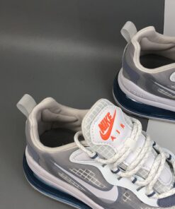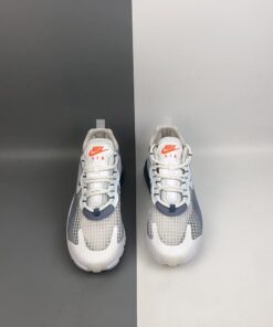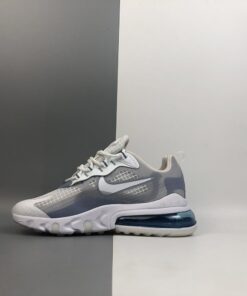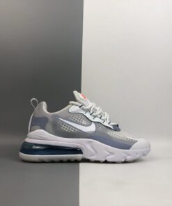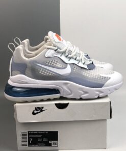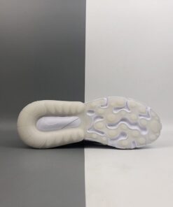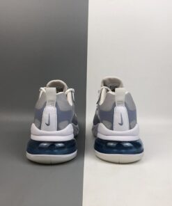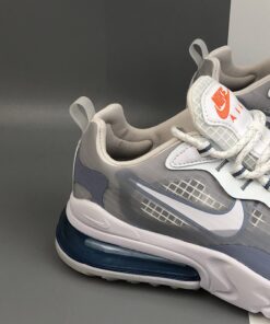 This offering of the Nike Air Max 270 features a Pure Platinum upper paired with Indigo Fog accents throughout as well as covering the rear Air unit in the heel. Orange pops is found on the tongue branding completed with a White React foam sole.