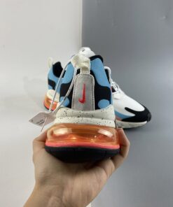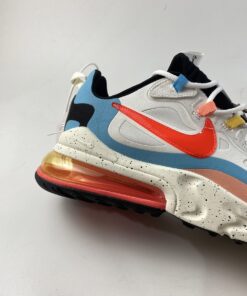 Inspired by the sky lantern, this offering of the Nike Air Max 270 React comes dressed in a White, Infrared, and Summit White color blocking. The shoe features a White upper with multi-color lace loops, Infrared Swooshes, Blue and Pink overlays atop a gradient Air Max heel unit. “The Future is in the Air” branding on the left tongue pull tab with the collection’s signature hangtag completes the design.