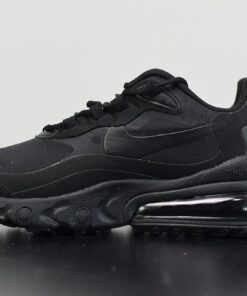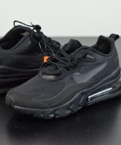 This offering features an all-Black upper with a tumbled leather Swoosh logo on the sides. Matching tonal branding atop a Black React sole and Air Max 270 heel unit with a Gold chain graphic on the insoles completes the design.
