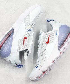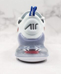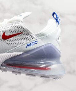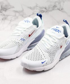 Painted from heel to toe in a clean white hue, striking blue accents feature throughout for a pop of contrast. A subtle red Swoosh shoots down the lateral and medial side panels for that unmistakably Nike look, and down below this AM270, a foam midsole is present, followed by a glossy Air unit which sits around the heel for additional comfort and a smoother stride.