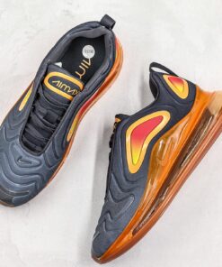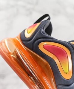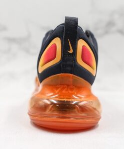 Primarily painted in a stealthy black hue, the Swoosh has injected the Air Max 720 Black Orange with various orange hits for a pop of contrast. Appearing on the lateral and medial side panels, the tongue, as well as the heel, this shoe is made for those who love a stealthy crep but also appreciate a bit of colour.