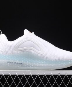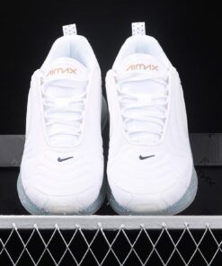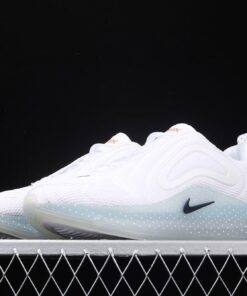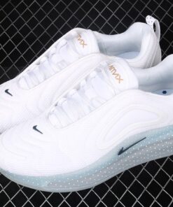 Dressed in a White, Midnight Navy, and Metallic Red Bronze color scheme. This Nike Air Max 720 features a White mesh upper with matching plastic overlays. Highlighting the shoe is its polka dot pattern on the Air Max sole unit as well as on the back heel tab. The signature French phrase is displayed across the medial.