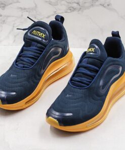 Looking closer it features mesh and plastic on the overlays done in Navy while the same shade lands on the laces, tongue and outsole. Orange then lands on the branding, heel and within the Air Max unit to complete the look.