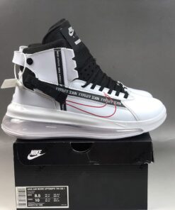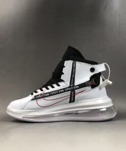 Dressed in a mix of White, Black, and University Red. This release features a leather upper with bold Red hues outlining the Swoosh logo on the sides. Black detailing atop a clear full-length Air Max unit completes the design.