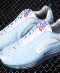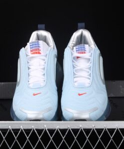Dressed in a Celestine Blue, Racer Blue, Metallic Silver, and Team Orange color scheme. This iteration of the shoe features a mesh upper with plastic overlays, translucent mudguard and a clear full-length Air Max sole unit. It comes complete with a gradient logo print on the tongues, block branding on the heel tabs highlighted with Waffle-inspired rubber tread graphic on the insole.