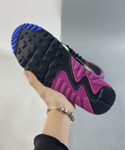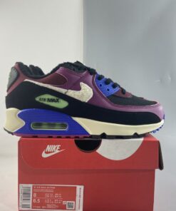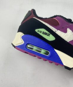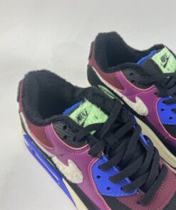 This edition of the Nike Air Max 90 comes constructed in a mix of ripstop, leather and suede covered in Purple, Blue and Lime Green color tones. Fur material is used on the tongues, Swoosh and inner lining to keep your feet warm during the colder months. An aged-look midsole completes the design.