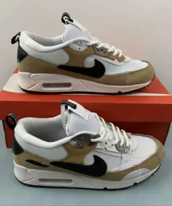 the Nike Air Max 90 Futura, a partly-up-cycled update to the 1990 running sneaker, appeared in a summer-ready white and tan makeover. Mesh base layers are accompanied by a series of suede, leather, TPU and other materials across the reworked upper. Pull tabs at the tongue and spine, as well as profile swooshes and waffle-patterned tread, deviate from much of their surroundings in pitch-black, though the contrast doesn’t distract too much from the rest of the Air Max design.