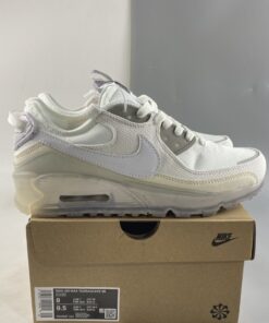 The Nike Air Max 90 Terrascape essentially derives from the iconic Nike Air Max 90 is featured in a timeless white and grey color scheme. Overall, this revamped iteration of the runner is defined by recycled fabrics and materials throughout. Other notable elements consist of a “Terrascape” branding on the tongue pull tabs and insoles, followed by an enlarged Swoosh on its side panels, while a semi-translucent midsole and Crater Foam speckled outsole solidifies the profile altogether.