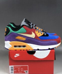 Dressed in a University Red, Pale Vanilla, and Hyper Grape color scheme. This Nike Air Max 90 features premium suede materials covered in the original color palette used on the iconic Dunk drop including the leather tongue labels.