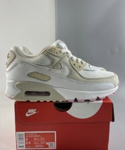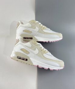 Its uppers are predominantly hued between “Summit White” mesh bases, Swooshes, and mudguards, and comes effectively paired with “Light Orewood Brown” hits that are consistent through the overlays, eye stays, and midsole molds. Additionally, accents of bronze latch onto the Nike branding present atop the heels and tongues, while a soft pinks line the treading and insoles to channel somewhat of a neapolitan ice cream aesthetic.