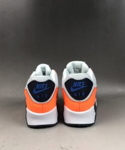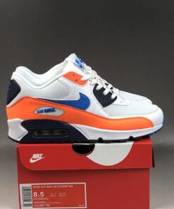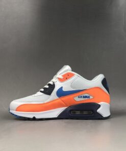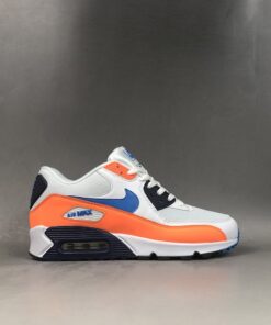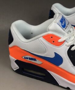 This offering features a White leather and mesh upper paired with Midnight Navy on the lower eyelets, midsole and heel tab. Both Orange and Blue contrasting is found on the Swoosh logo, tongue, heel tab, upper eyelets and midsole.