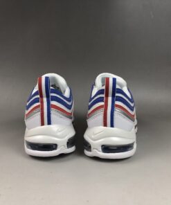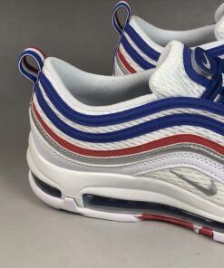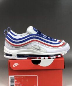 With the 2019 NBA-All Star Game in Charlotte set to tip off in just over two weeks, the anticipation surrounding the annual celebration of the league’s best and brightest is growing rapidly. And that aforementioned anticipation is not just for the game: it’s for the shoes as well. Each and every All-Star game is accompanied by a veritable profusion of special releases — both collaborative and in-line — and the latest to surface is a jersey-styled Air Max 97. Calling upon the classic white, blue, and red palette that’s become linked with the star-filled exhibition over decades past, this 97 uses a white jersey-style material as the base to leave no doubts about its uniform-themed inspiration. Bright red and blue accents then appear on the upper’s swooping lines, the tongue, and the tri-colored heel tab for a look that’s both playful and patriotic. For a final colored touch, the tongue also features removable oval adhesive Swoosh patches — and the shoe is then completed by a dark royal blue Air Max unit and a special insole.