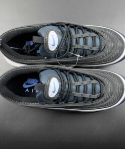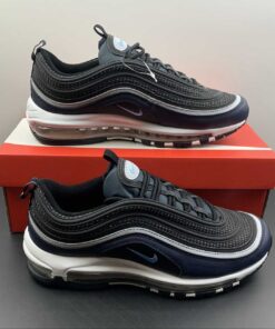 Centered around its full-length deep “Navy” mudguard, additional color-matched samplings treat the tongues’ nylon construction before speckled white accents mark the underlying black mesh creating a grid-like pattern throughout the midfoot. Further pitch-black hits are placed along the inner lining, lacing structure and pull tabs before a lighter tone is established through embroidered “University Blue” Checks and stitched tabs whereas a clad white midsole sits atop the models’ staple Air Bag and two-toned tread.