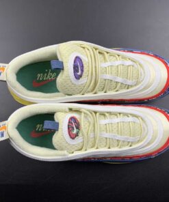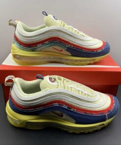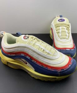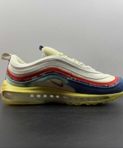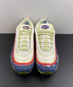 Dressed in a Coconut Milk, Track Red, and Fossil color scheme. This offering of the Nike Air Max 97 comes constructed in a mix of mesh, suede, canvas, and denim-like materials. Other details includes graphic patterns with vintage-styled branding on the heel pull tabs and insoles. An aged midsole atop a Gum translucent outsole completes the design.