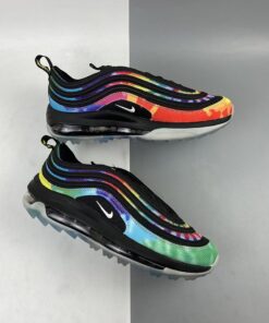 the 23-year-old trainer emerged in a white arrangement as part of the Swoosh’s “Peace, Love and Golf” collection. Psychedelic prints animate the pair’s underlays and full-length mudguard, while vamp overlays indulge in a “Black” color scheme. Swooshes on the tongue and midfoot partake in stark white contrast, whereas non-standard “nike athletic department” text on the heel pull tabs sport a high-vis yellow tone; sockliners follow suit. Underfoot, sole units further inverse their appearance in July’s capsule by boasting “Black” tooling and Air Max cushioning. Outsoles, however, opt into a translucent finish that reveals enlarged “LOVE” text clad in tie dye stylings.