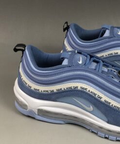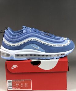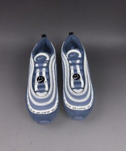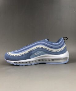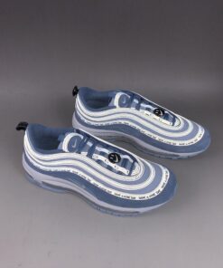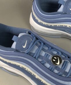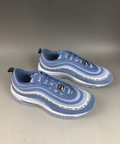 Part of the collection will include a few Nike Air Max 97 color options. One of those is this iteration dressed in array of Blue tones with “Have A Nike Day” repeated on the racing stripe as well as the heel tab. A White midsole and atop a Light Blue rubber outsole completes the design.