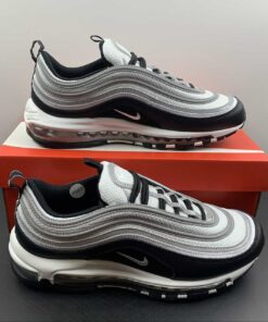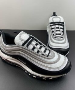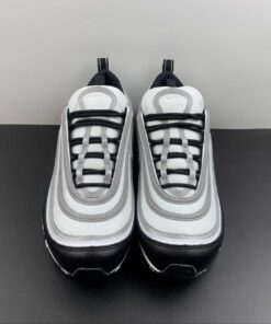 Set to arrive later this year is this simple black and white colorway of the 97, capturing the trendy “Panda” look that dominated the Dunk Low circuit. However, these feature the trademark reflective silver tracks on the upper as well as the tongue, adding high visibility when hit with flash.