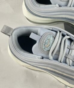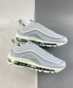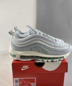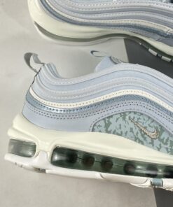 This offering of the Nike Air Max 97 features comes dressed in a Light Blue hue constructed with a mesh base, leather and 3M reflective overlays. Reflective camo-like detailing on the tongues tags and mid-panels atop a White rubber sole completes the design.