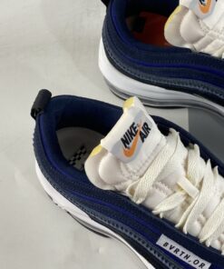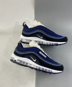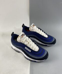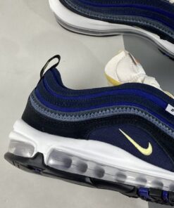 Signature to the collection, both an “AMRC” hangtag and a silver accessory accompany the shoe, respectively accenting the side and lace unit. And in direct nod to older pairs, the latter fixture is given a “Sail” coat, which complements the distressed finish of the navy suedes below. But the blacks of the mudguard, Royal tone of the mesh underneath, and the white midsole are far more pristine by comparison, blending in an obviously new touch.