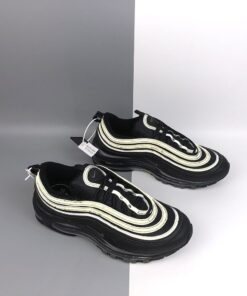 Looking closer, this Nike Air Max 97 comes dressed in an all Black color theme while constructed with a mixture of leather and textile mesh. Adding some pop is the traditional use of 3M Reflective accents which runs across the panels. Finishing the look is the Air Max unit along with a Black rubber outsole.