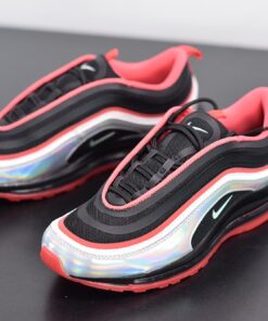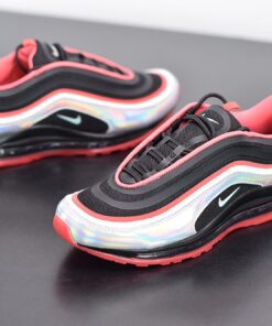 The Nike Air Max 97 Ultra takes an already-sleek silhouette and streamlines its shape even further, flattening out the upper’s swooping lines and calling upon new taped-style detailing. It’s an interesting new-age take on one of the most compelling Air Max ever, and now it’s appeared again boasting a brand-new detail: iridescent mudugards. While the majority of the upper is composed of a relatively simple mix of sporty red and dark black, the mudguard itself is anything but simple, sporting an arresting iridescent silver that reflects different rainbow-spectrum colors depending on how you view it. The shoe’s bottom half then calls upon the same straightforward combo of red and black for the midsole,