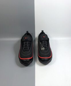 Looking closer this Nike Air Max 97 features Black open mesh across the upper while Black leather lands on the mudguard and overlays. Red accents then brings the Valentine’s Day theme together while 3M Reflective is applied to the upper ribbing and tongue. Finishing the look is a heart locket hangtag.