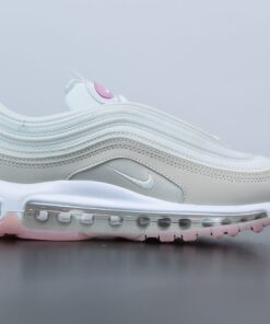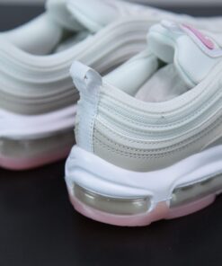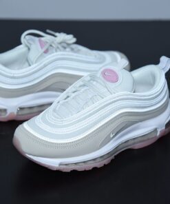 Looking closer this Nike Air Max 97 comes with White mesh across the base while the same shade is applied to the racing stripes and leather overlays on the tongue. Following we have Beige leather on the mudguard while Pink detailing is used which includes on the translucent outsole. Finishing the look is a White midsole.