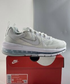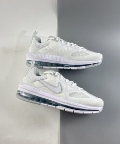 this Nike Air Max Genome comes constructed with mesh, perforated leather, and synthetic materials on the panels. Furthermore, the pair stays true to its name with its all-White upper while minimal Grey accents are spread throughout. Lastly, a full-length Air Max unit and a Free Run-like outsole finish the look.