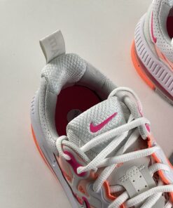 This offering of the shoe comes in a “Bubble Gum”-like color blocking featuring a White upper constructed in a mix of mesh, perforated leather and synthetic paneling.