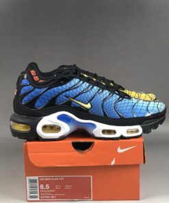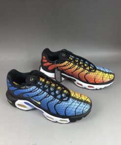As you can see the ‘Greedy’ edition of the Nike Air Max Plus comes highlighted with a gradient Blue and Orange which is split right down the middle. In addition we have a line pattern on the toe which runs up the tongue and medial side. Black is also seen on the pipping, trimming and laces. Completing the look we have White on the midsole and Black on the outsole.