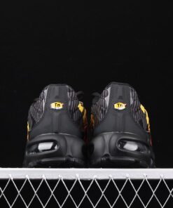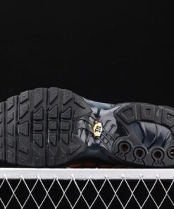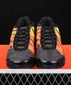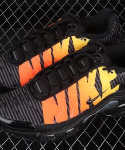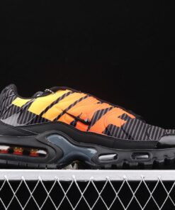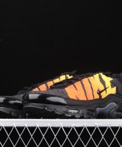 Part of an upcoming “Striped” Pack that was revealed during London Fashion Week. This iteration of the Nike Air Max Plus dons a Black, Orange and Grey color scheme. It features a Black-based upper with Dark Grey stripes, a clear TPU cage overlay and an oversized “NIKE” text in Orange on the sides. Orange continues on the Air Max heel unit, completed with a solid Black sole and 3M Reflective hints on the tongue.