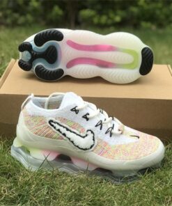 Giving the Air VaporMax’s spiritual successor a makeover like no other, this Air Max Scorpion features a crisp white Flyknit upper with multicolored detailing across the sides. While the Swoosh on the medial is left clean and simple, the one on the lateral panel is taken over by fluffy clouds. This motif extends towards the custom insoles which feature playful graphics and characters, complete with a chat log-inspired design and calendars which show the exact date for Air Max Day. Elsewhere, a pair of twinkly eyes are embroidered across each tongue, and all of this sits on top of an extra chunky Air midsole that’s as comfortable as ever.