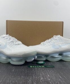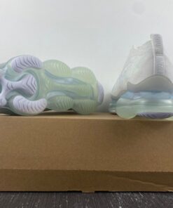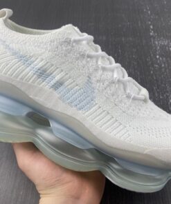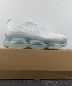 This pair in a White, Pure Platinum, and Football Grey color scheme. This offering of the Nike Air Max Scorpion features the clean, yet eye-catching profile dons a white flyknit upper that is complemented with hits of mint adorning the Swooshes on its side panels. It comes with a thick full-length Air Max sole unit as the brand describes it as using enhanced Air that offers “tomorrow’s comfort today.”