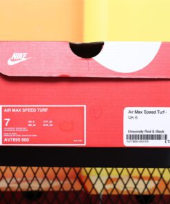 This Nike Air Max Speed Turf comes dressed in a clean University Red and Black color combination. Constructed with nubuck, suede and textile while a mid-foot velcro strap is seen. Other details includes an Air Max unit in the heel while both Red and Black covers the midsole and outsole.