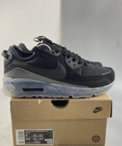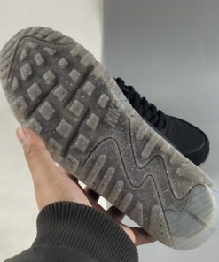 the modified take on Tinker Hatfield’s 32-year-old design emerged in a stealthy, predominantly black ensemble. Reworked uppers don mesh, leather and other fabrics flirt with the outdoors, while pull tabs at the top of the tongue and spine deliver a utilitarian-inspired update ripe for the trails. The most notable changes to the beloved Air Max sneaker, however, arrives via the sole unit. Partly-recycled materials are given a semi-translucent, “Midnight Navy”-reminiscent and grey makeover, further expanding the 1990 creation’s design catalog.