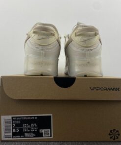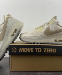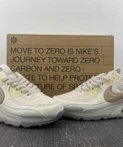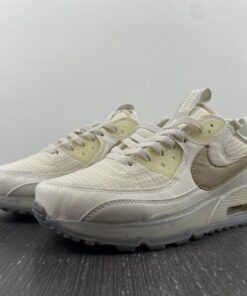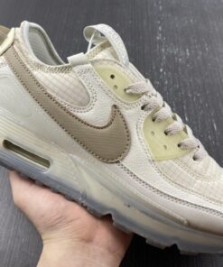 Dressed in a Light Bone, Rattan, Cashmere, and Sail color scheme. This offering of the Nike Air Max 90 comes constructed with recycled fabrics and materials. Other details includes “Terrascape” branding on the tongue pull tabs and insoles atop a semi-translucent midsole and Crater Foam speckled outsole.