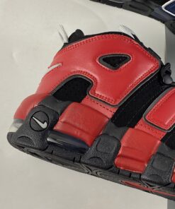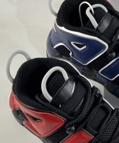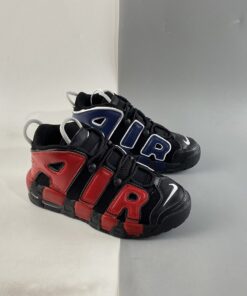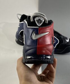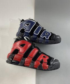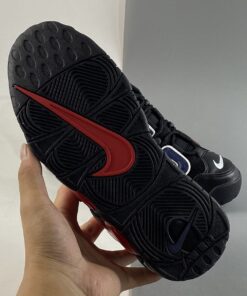 The new offering sees a black suede build that is complemented by leather overlays on the toe. On the lateral side, the exaggerated “AIR” appliques are in vibrant red leather and are further animated by black outlines. The red extends beyond the lettering to coat portions of the midsole. As for the medial side, the “AIR” overlays take on a nearly opposite approach by assuming a navy fill and white borders. The navy and red eventually meet at the heel, where a clear Nike logo and Pippen branding is found. Grey pull loops on the tongue and heel round out the design, delivering a bold, court-ready look.