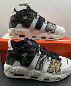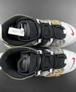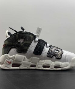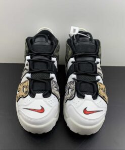 This offering of the Nike Air More Uptempo features a Sail leather base with Black tongues, lining, and matching laces. Highlighting the shoe are different animal prints used on the oversized “AIR” branding. Other details includes slash marks on the tongues, Red contrasting accents atop a Sail rubber sole.