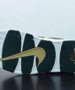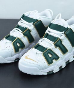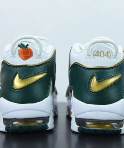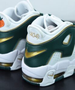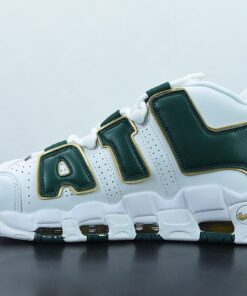 This “Atlanta” edition of the Nike Uptempo is inspired by Scottie Pippen winning a NBA Championship and Olympic Gold Medal in the same year. Its color scheme is a nod tot the Atlanta 1996 Olympics. Highlighted with an oversized “ATL” on the sides with an embroidered Georgia Peach logo and the OG Atlanta 404 area code on the heels. A White leather with perforated detailing covers the upper, while having Gorge Green and Metallic Gold accents.