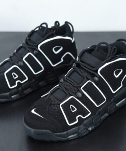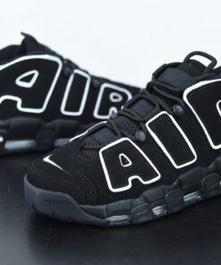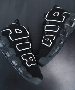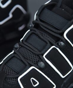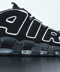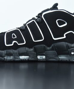 Dressed in the original Black and White color scheme. This Nike Air More Uptempo features a Black nubuck upper with its signature large “AIR” outlined in White across the panels. The Swoosh logos on the tongue, midsole, insole, and outsole are also done in White completed with a translucent bold Swoosh on the heel.