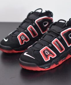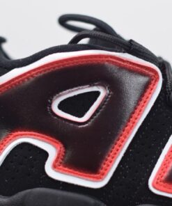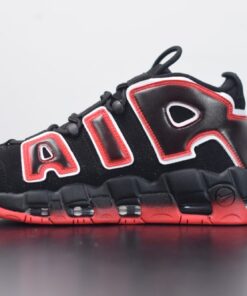 Underneath the obvious embellishments, the pair arrives just as the OG pair does; black nubuck uppers with white Swooshes, murdered-out sole units and white trimming around the lettering — the only change to the base is a quick hit of tumbled leather on the tongue. It comes capped off with an airbrush-like effect in Laser Crimson around the outsole and within the lettering panels.