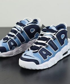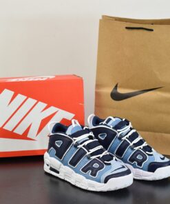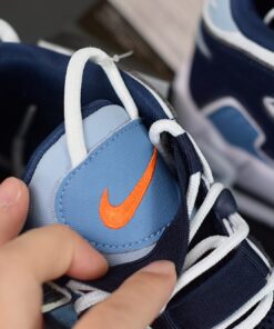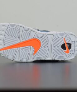 Dressed in a White, Obsidian, and Total Orange color scheme. This Nike Uptempo features three different shades of denim throughout its upper atop a solid White rubber sole. Finishing off the design are Orange accents on the tongue, insole, and outsole Swooshes.