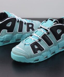 With its bold Air branding, bulky look, and association with the great Scottie Pippen, the Uptempo has always been a sneaker that made a statement. This makeup opts to do that in a vibrant fashion, equipping a familiar aqua-colored base with bold black detailing on the signature “AIR” letters and a large translucent jewel Swoosh on the heel. Down below, a teal midsole with a translucent Air Max cushioning unit completes the look.