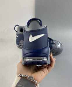 this Nike Air More Uptempo comes dressed in a Cool Grey, White and Midnight Navy color combination. While mimicking the schools colors, this pair doesn’t have any attached to the Hoyas. Utilizing Cool Grey across the base while Midnight Navy lands on the large ‘AIR’ and other small accents. Finishing the look we have White on the laces and Nike Swoosh logos on the toe box and midsole.
